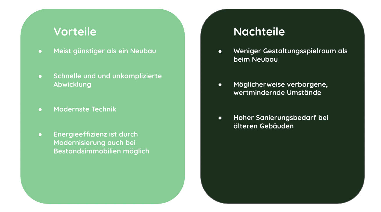 Die Beantwortung dieser Fragen hilft Ihnen dabei, den Zustand der Bestandsimmobilie richtig einzuschätzen und einen fairen Preis auszuhandeln.